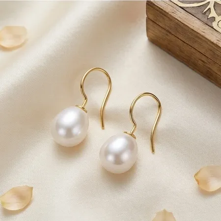 Sterling Silver Earrings with 9-9.5 mm Irregular Freshwater Pearl
