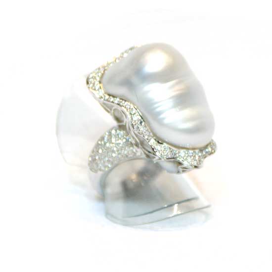 - Material: South Sea Baroque pearl, diamond, 18k white gold.