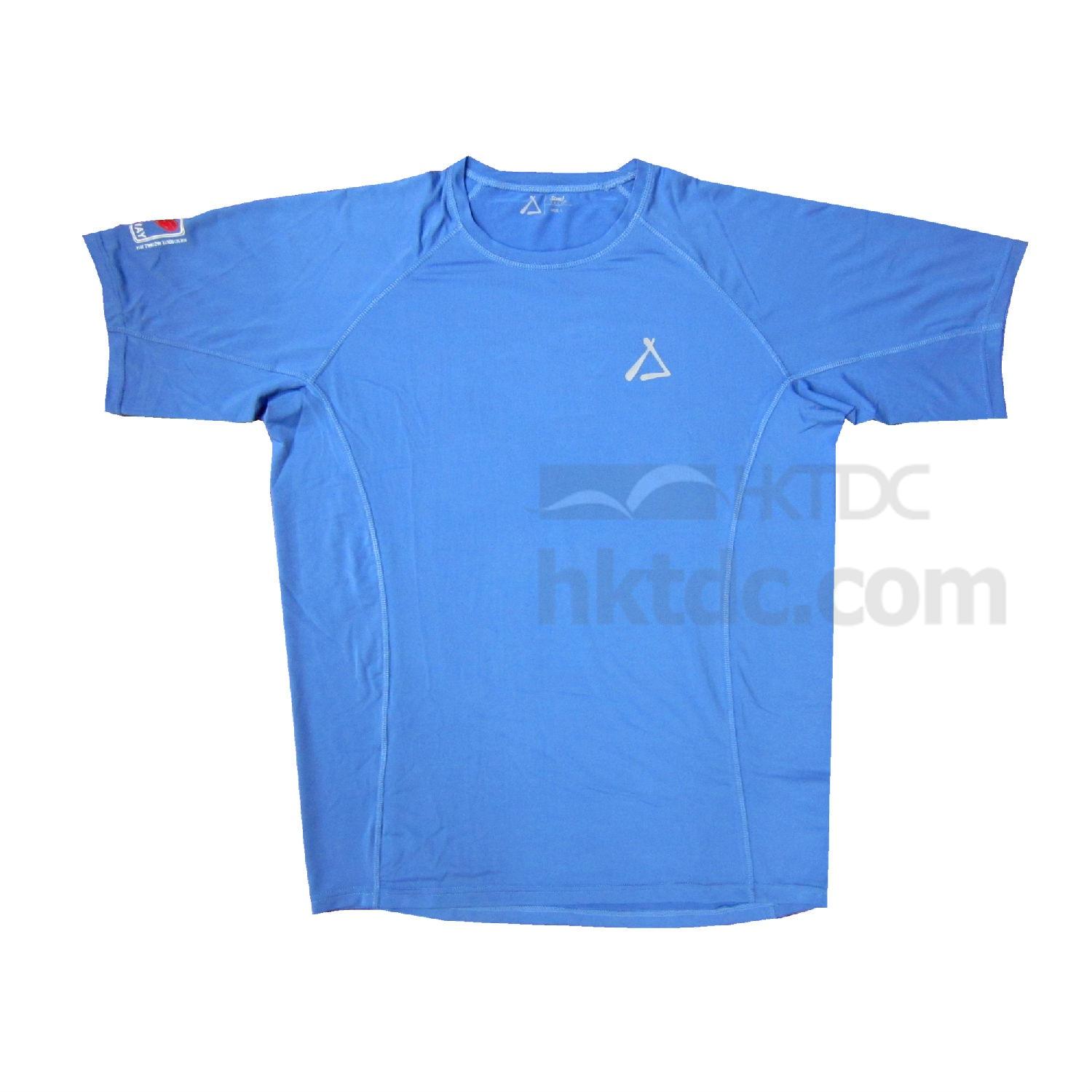 The pictured tee shirt has a nylon spandex construction and is ideal for base layer use. It has short sleeves with a crew neck and is decorated with a logo on the chest. This base layer tee offers a soft and comfortable fit and is simple to care for.