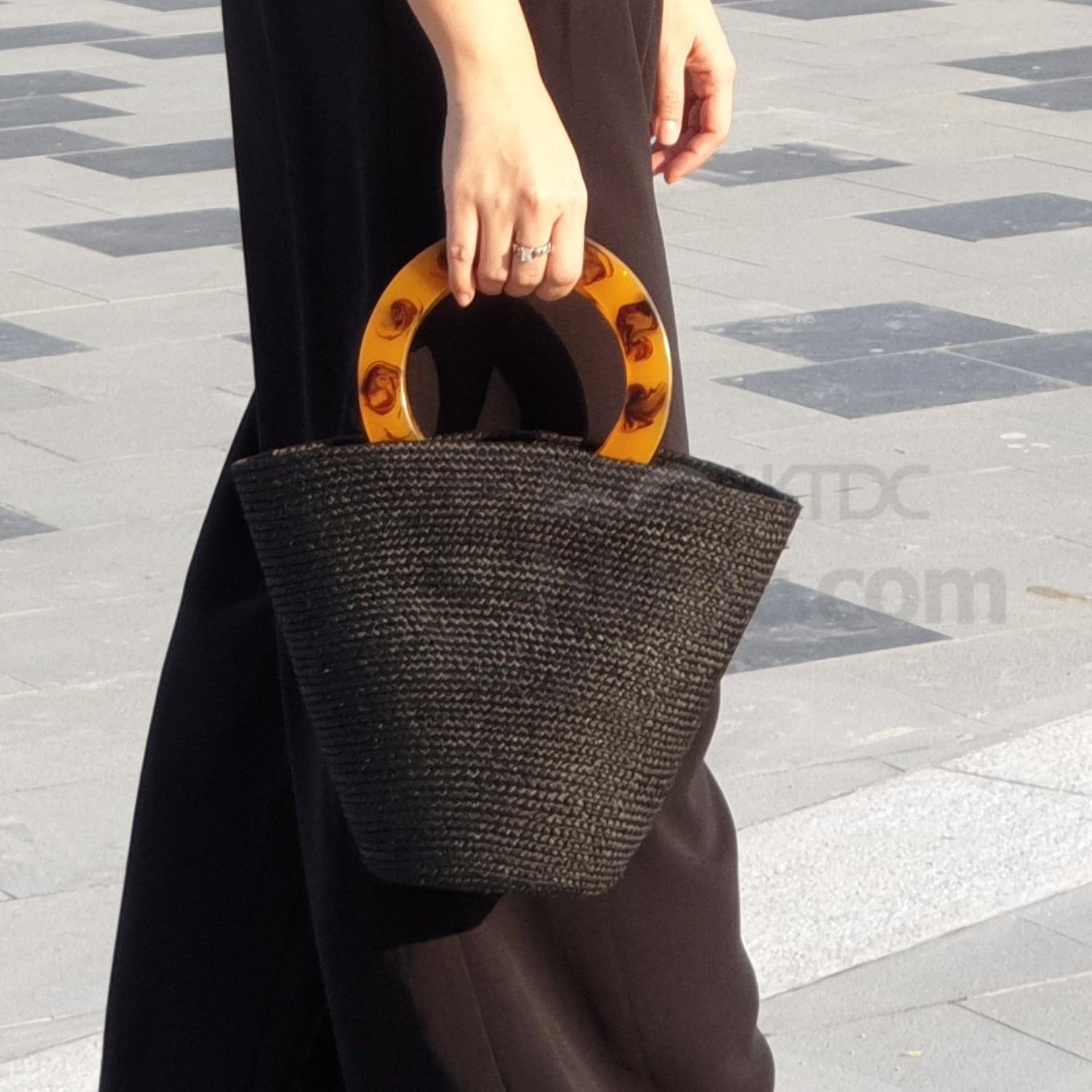 Pull off a laidback style on your weekend date with this basket bag. Framed into a streamlined silhouette with sisal fiber, the handcrafted bag features a spacious interior for holding all your personal belongings in a highly organized manner. Accented with a pair of tortoiseshell resin handles, the stunning handbag pairs well with a myriad of fashion styles.