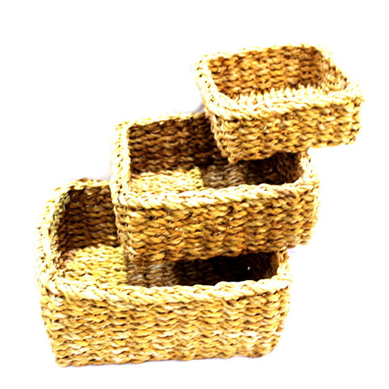 These baskets are knitted with grass for a natural touch on the hands. The natural grass is strong and durable. They are made for general-purpose storage in the house.