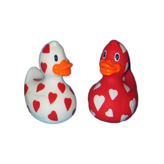 The featured bath duck is printed with a funny love-heart pattern. Each piece is made of quality material that is safe for squeezing. This bath duck is a great item to entertain babies in bathtubs.