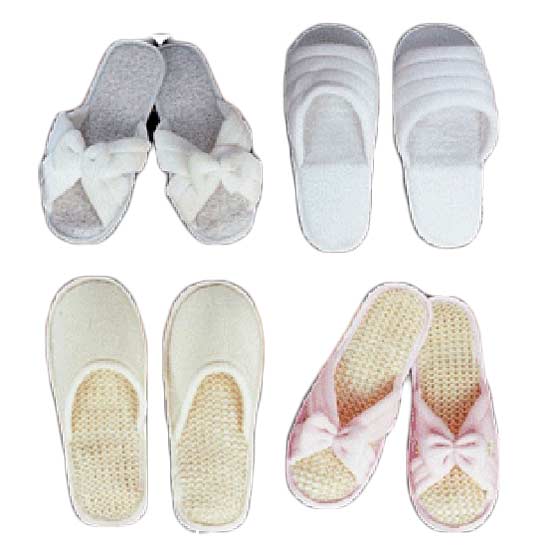 These bath slippers are in four styles. They come with open-toe and closed-toe styles. Some designs are decorated with bows, giving a graceful touch.