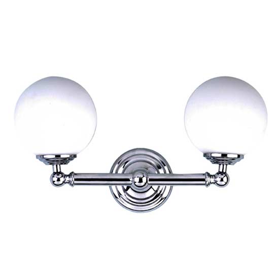 This silvery bathroom fixture comes in a balance-like design. It boasts two perfect round white bulbs for added elegance. Embellish the bathroom with this durable wall lamp.