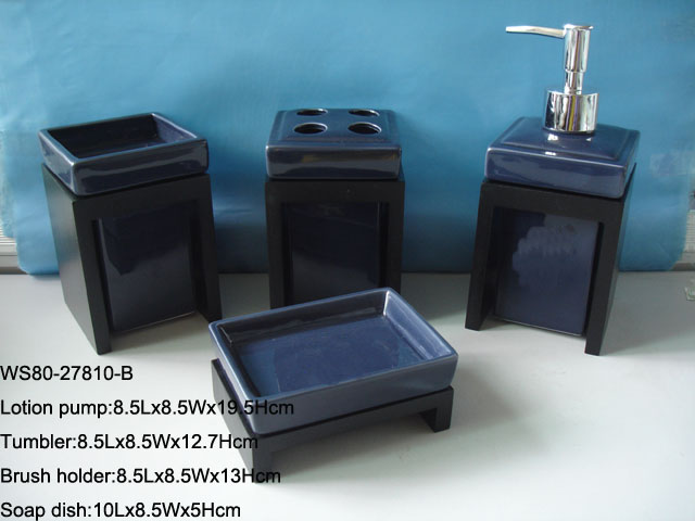 - The set includes a lotion pump, a tumbler, a soap dish, a toothbrush holder.