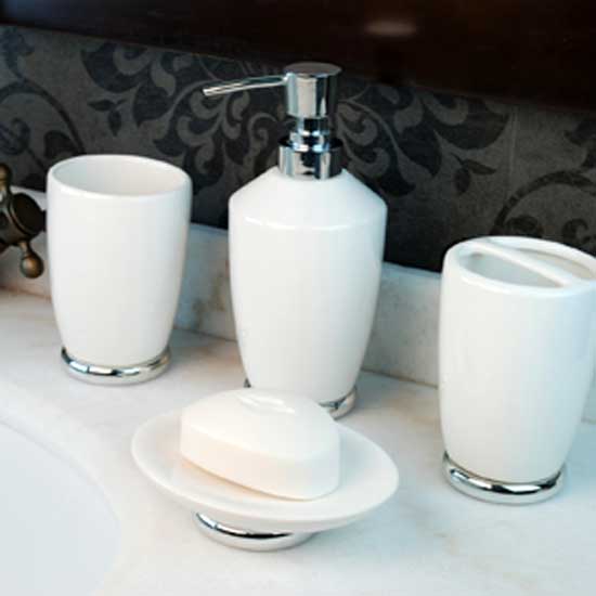 This bathroom set is made of top-quality ceramic material for added endurance. The top-quality metal base offers a sturdy and stand-alone feature. This bathroom set is suitable for households, hotels and so on.