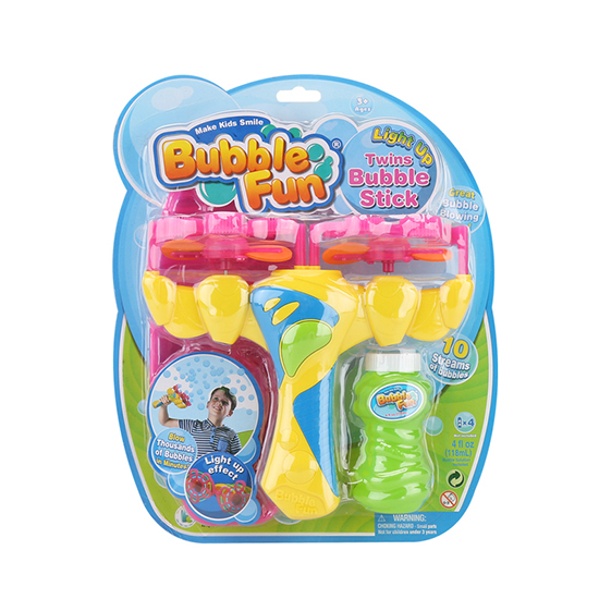 -- Light-Up Bubble Blaster with 2 blowing wands to blow thousands of bubbles in few seconds through 10 individual streams for maximum fun.