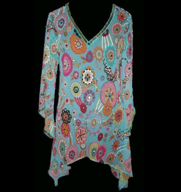 • It is hand-made with beads and sequin sewed on the necklace and the sleeves.