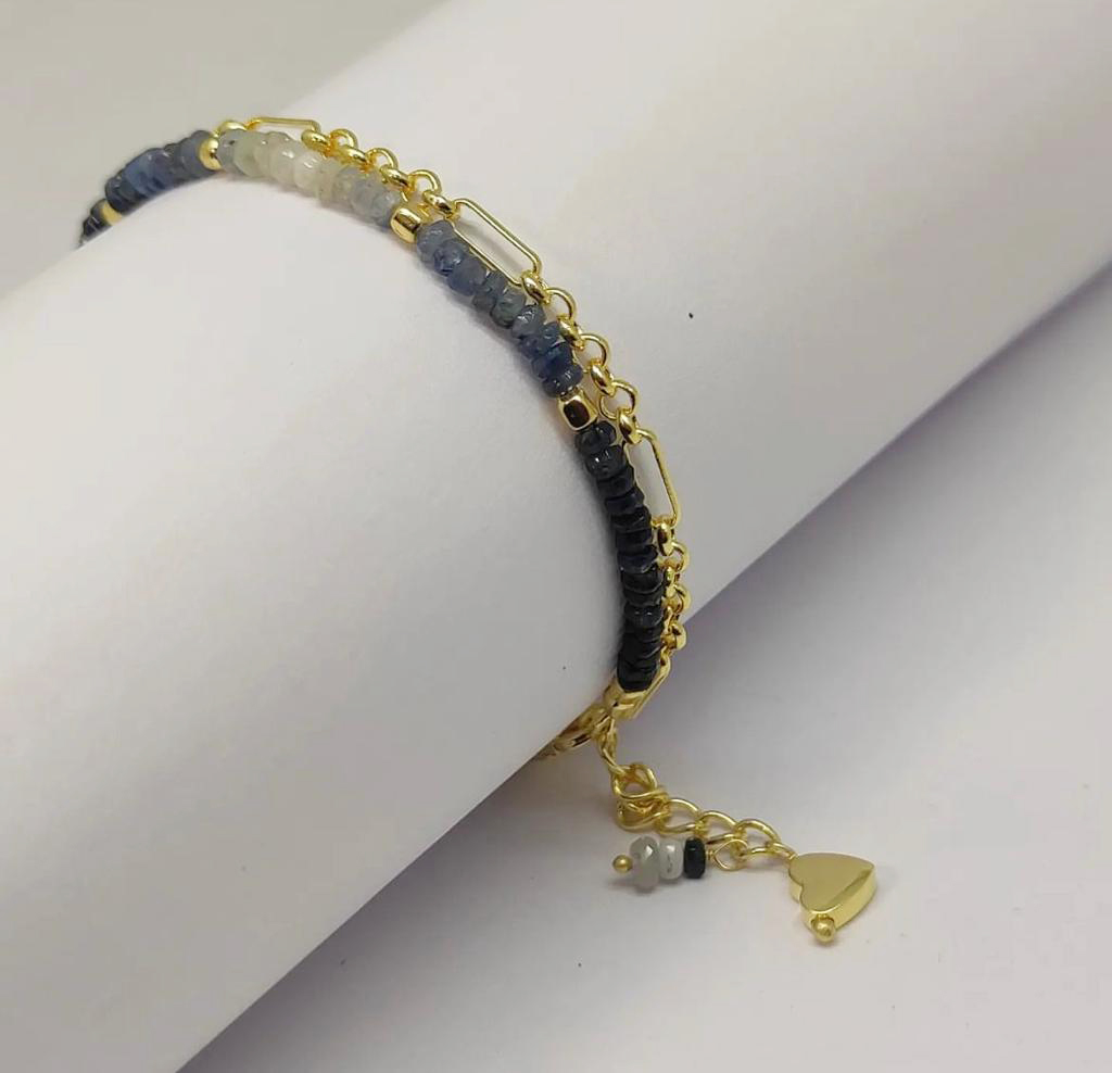 Gold Plated Beaded Bracelet of Semi Precious Shaded Sapphire Beads.