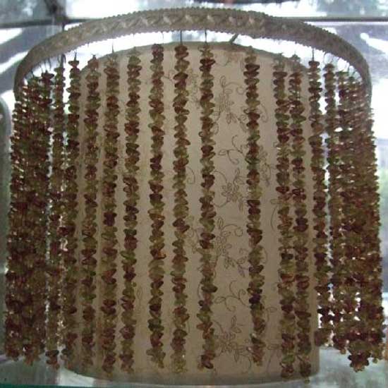 The cylinder-shaped lampshade flaunts dangling strands of beads. The translucent lampshade is highlighted by elegant floral patterns. This delicately crafted lampshade is great for floor lamps and table lamps.