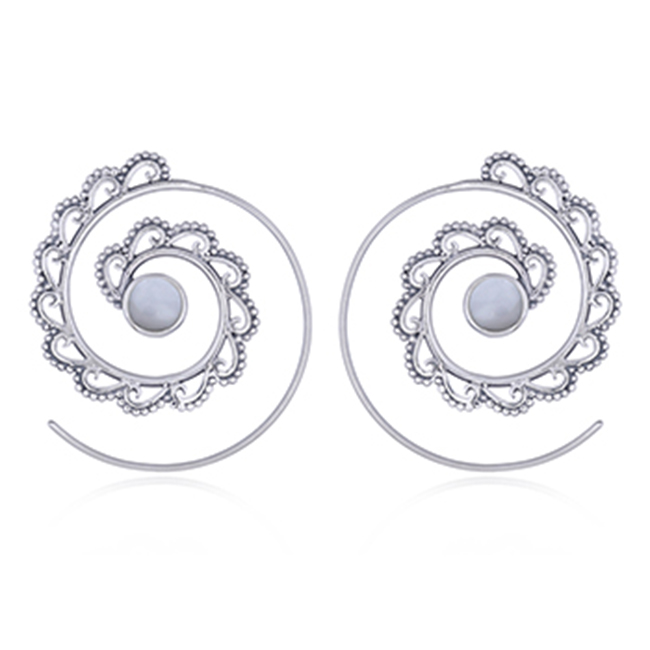 Beaded Wavy Silver Drop Earrings With Mother Of Pearl
