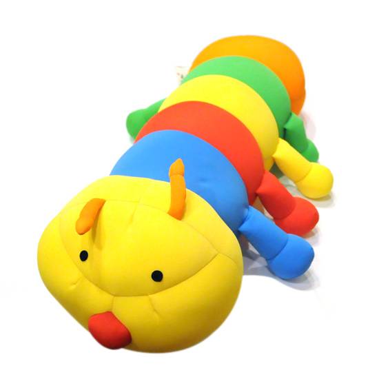This is a colourful palmerworm beanie cushion. Its covering material is made of elastic fabric which ensures the cushion returns to its original shape even after excess pulling. It is also available in other assorted animals, such as chicken, turtle, frog, and assorted fruits.