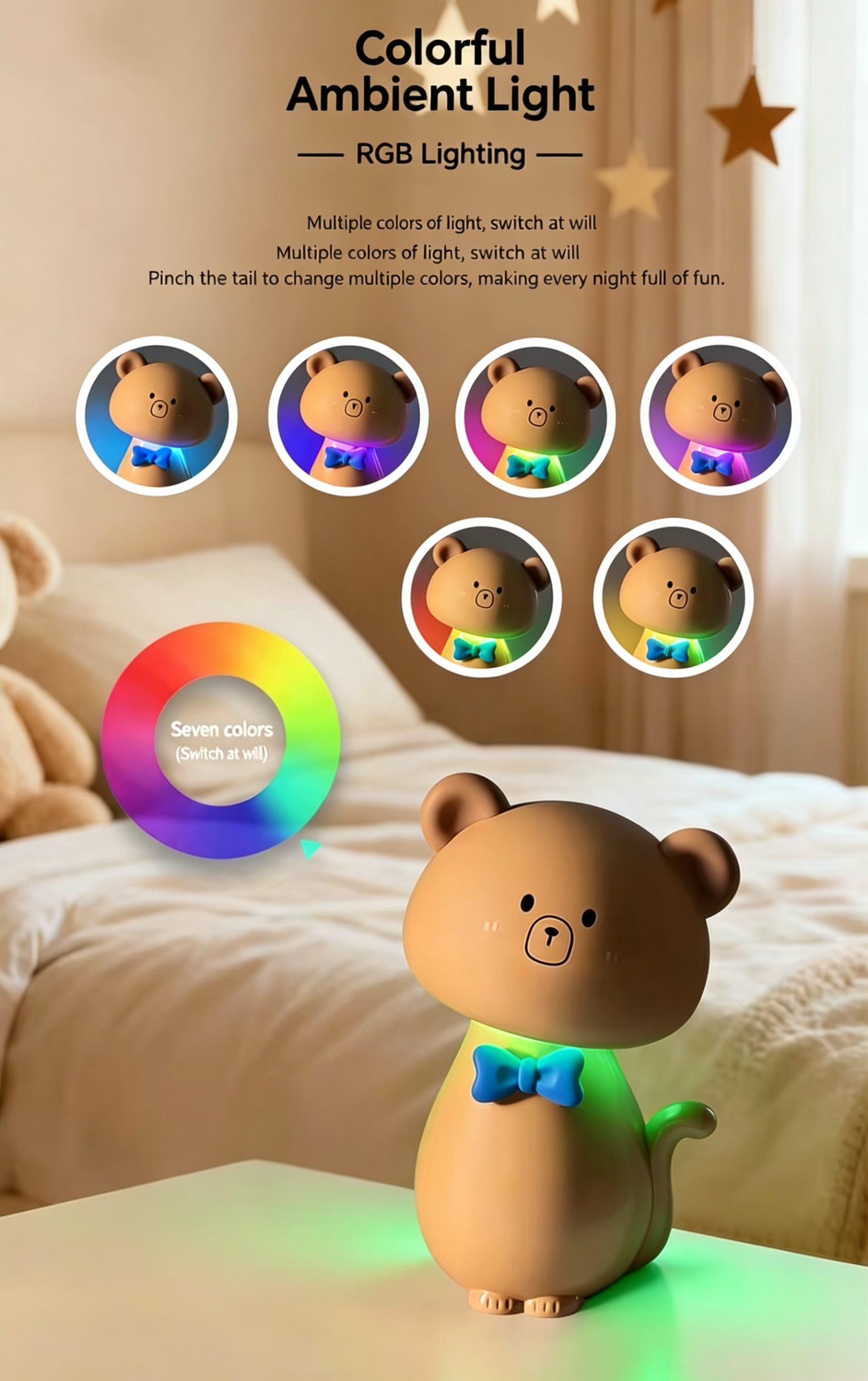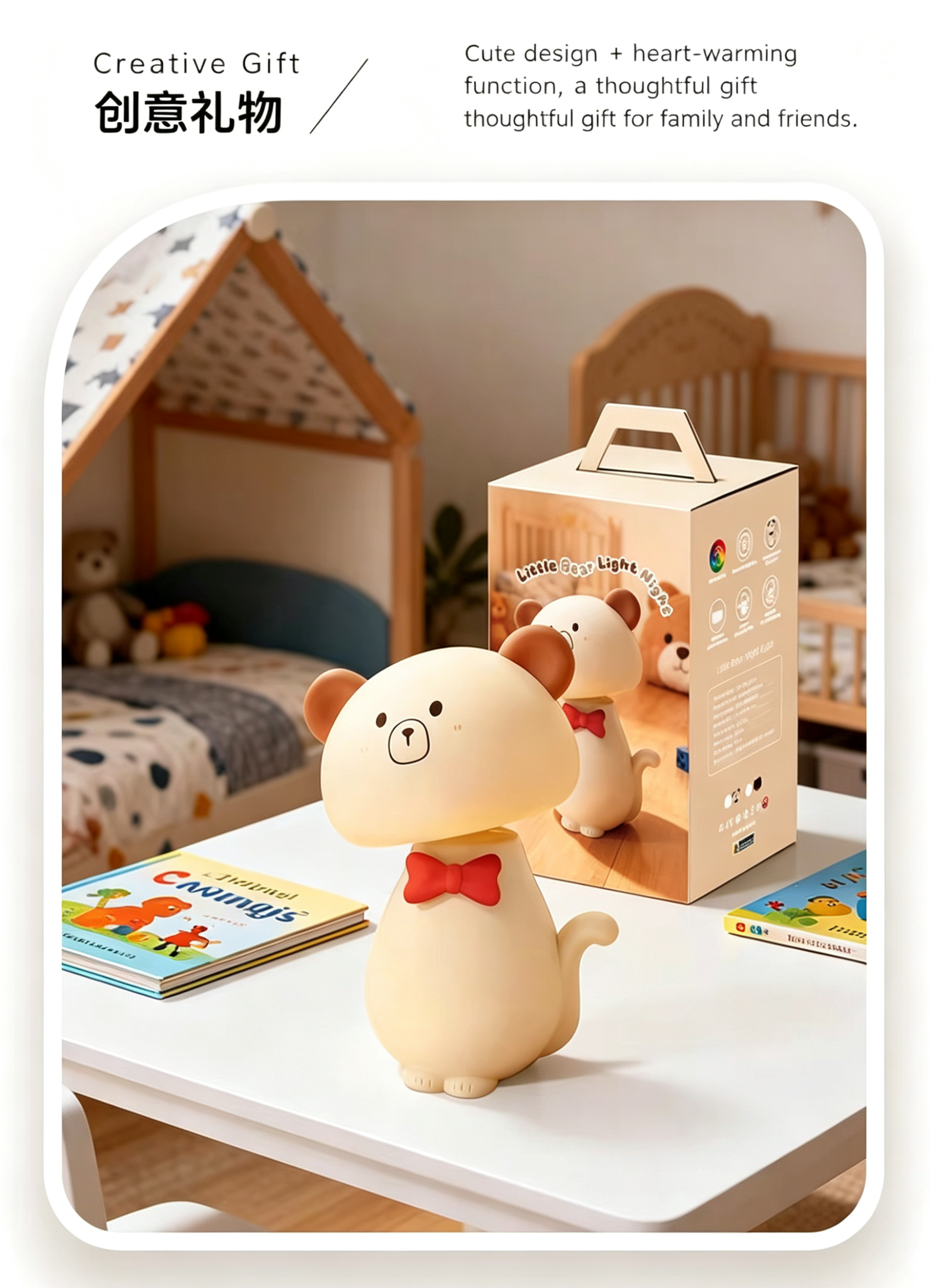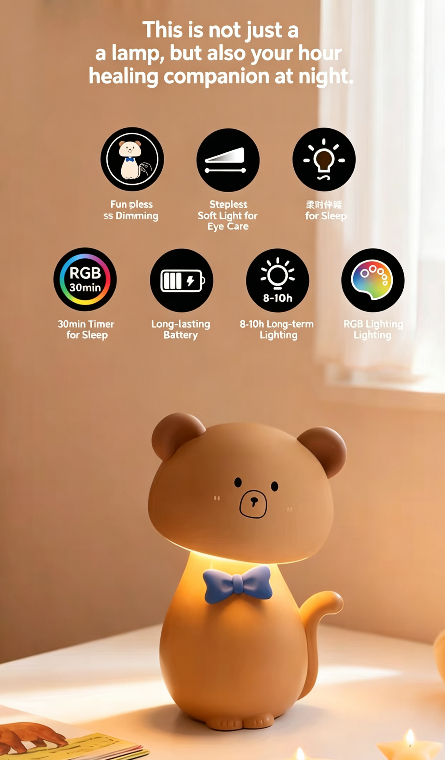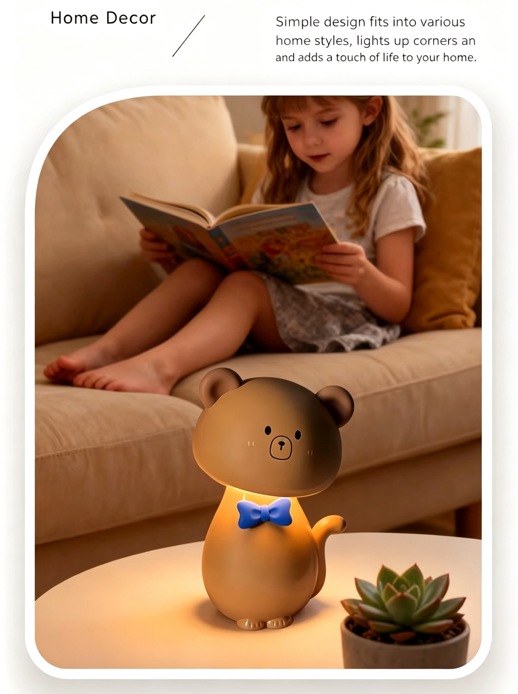 This cute bear night light is perfect as a bedside lamp for kids, a cozy decor for bedrooms, or a sweet gift for friends and family. The soft glow creates a warm, relaxing atmosphere for bedtime, reading, or late-night chats!
