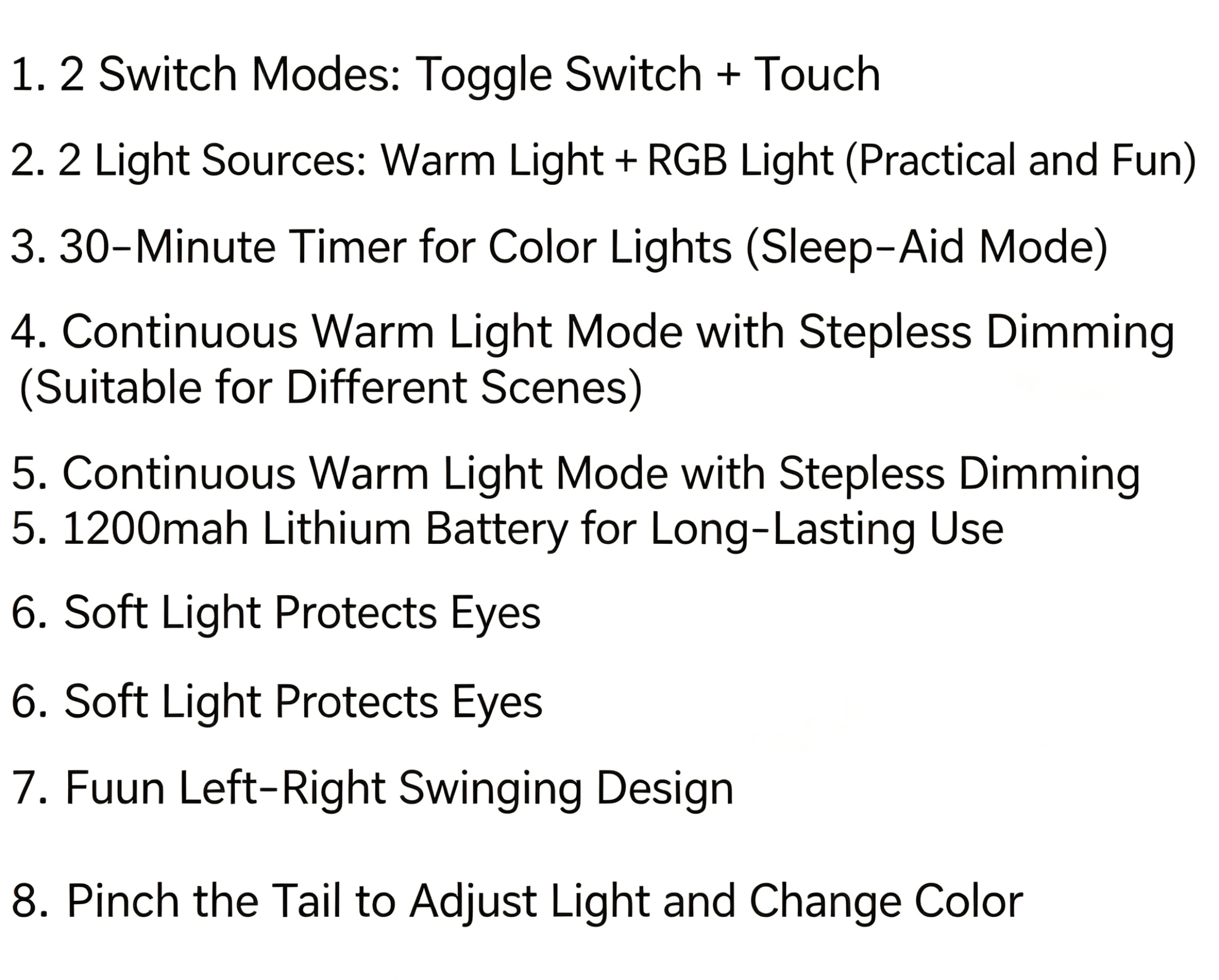 - RGB colorful light mode with 30-minute auto-off timer (sleep-friendly companion).