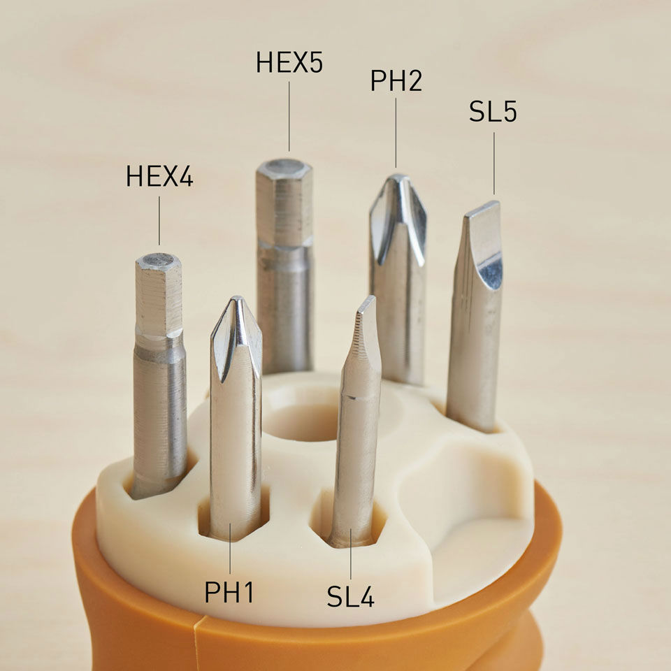 - 6 pcs ¼" Phillips (#1, #2) and Slotted (4,5mm) and Hex(4,5mm)