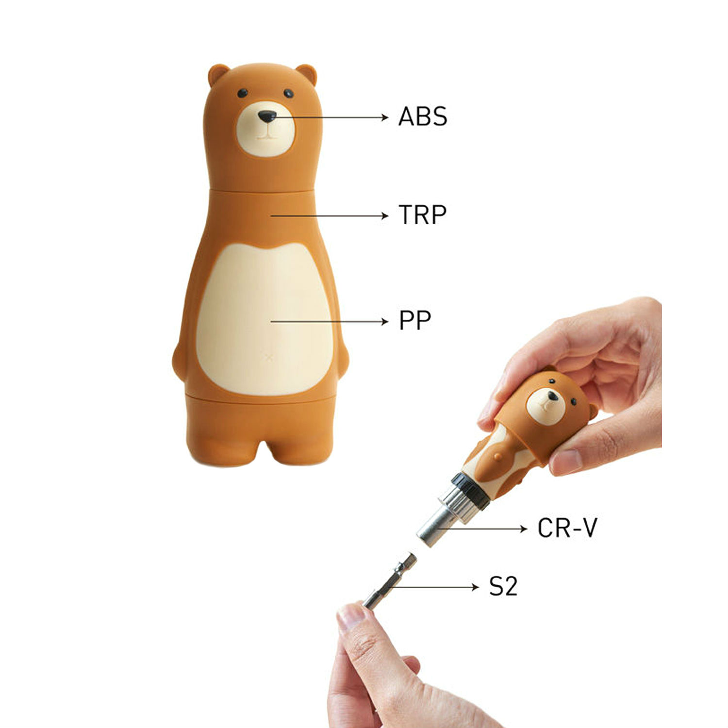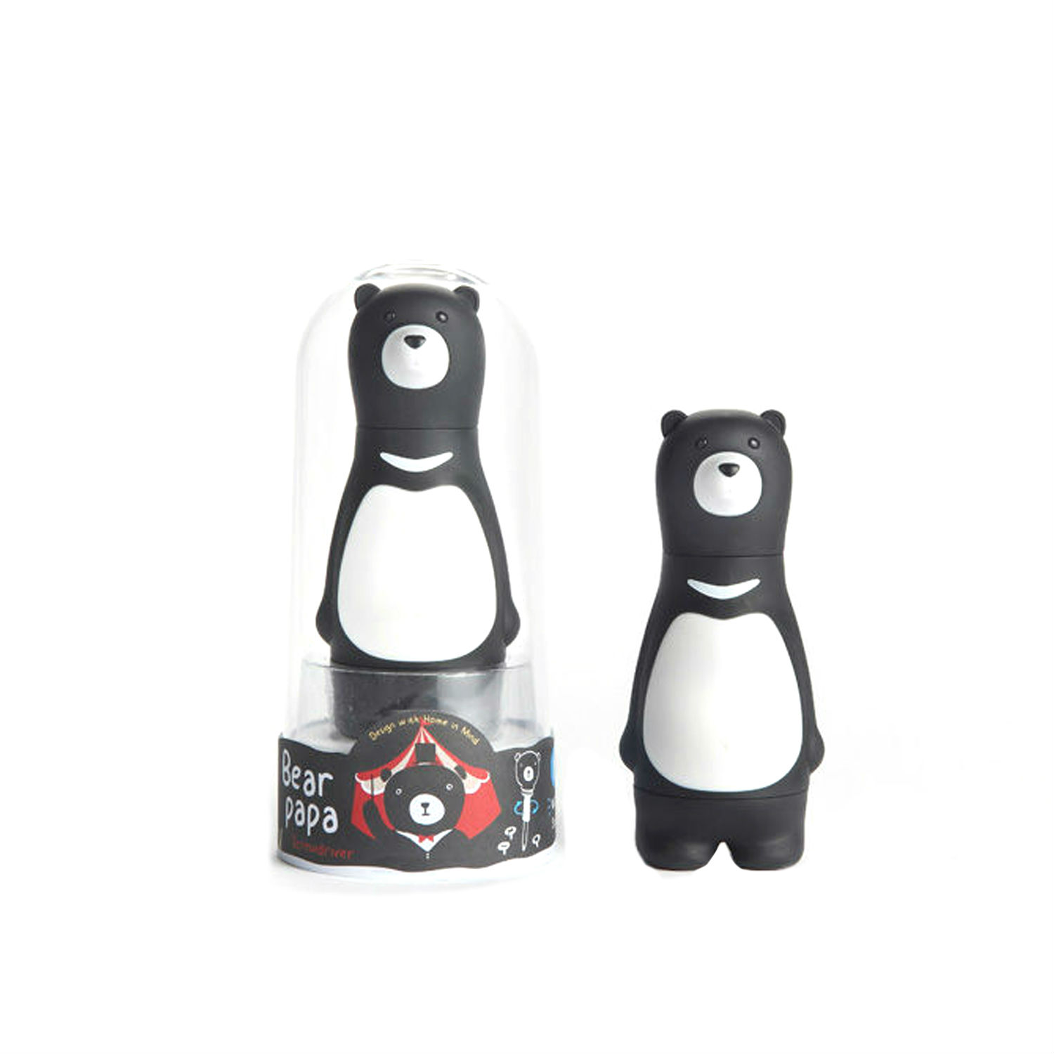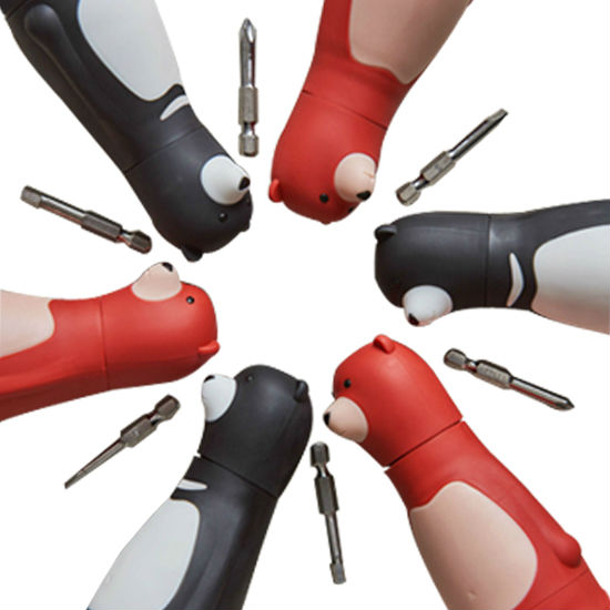 Bear papa ratchet screwdriver is settled with a magnetic bits holder of the head. Its torso can be removed from the feet which contain six different bits of most common sizes. The white “V” on the chest of the black bear represents Taiwan Black Bear which is the most significant and rare animal of Taiwan. We’d love to share Taiwan Black Bear with the world with Bear papa.