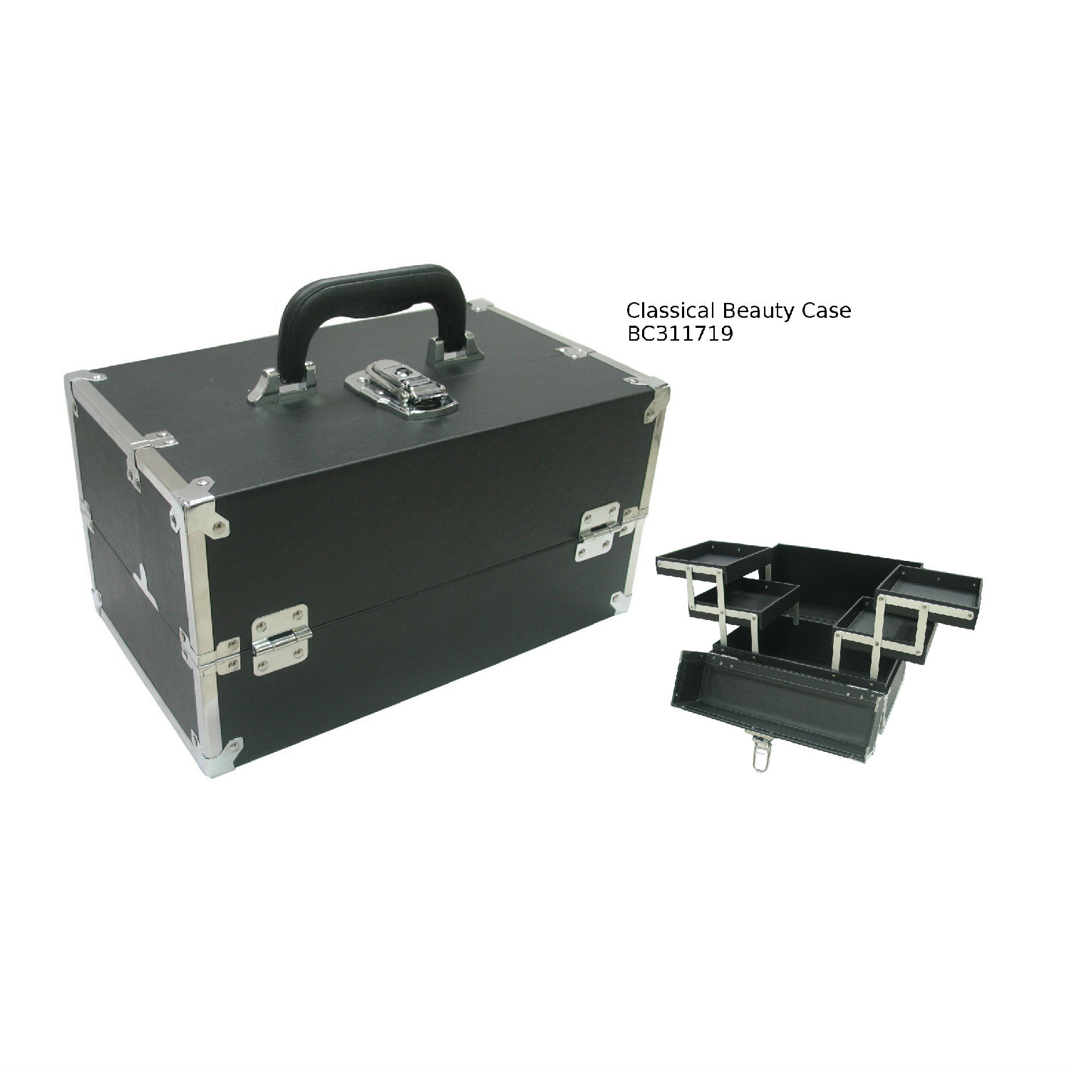 This is classical beauty case with 4 trays insides. Good design and the finest workmanship on it will be lady's choice.