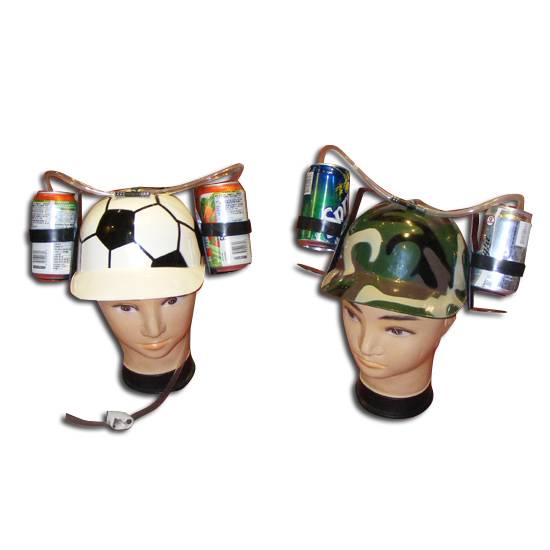 Through ingenious and scientific technology utilizing a helmet, the beer helmet revolutionizes beer consumption by placing beverage containers on both sides of the frontal lobe. The lines of the beer helmet will allow the drinker to imbibe from two beverages at once.