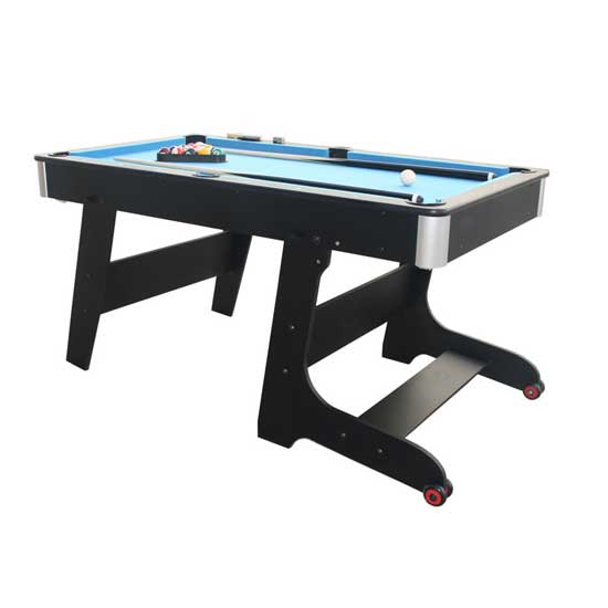 Featured here is a 5-feet pool table with folding legs for easy storage when it is not in use. It is extremely durable and easy to assemble. This billiard table is a great choice for hotels or leisure centers.