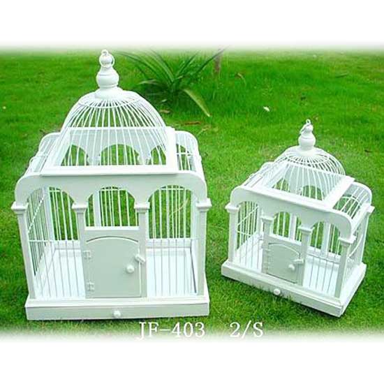 These western-style bird cages feature a house design. The elegant bird cages are painted in a white finish. They can enhance your interior decor with beautiful birds.