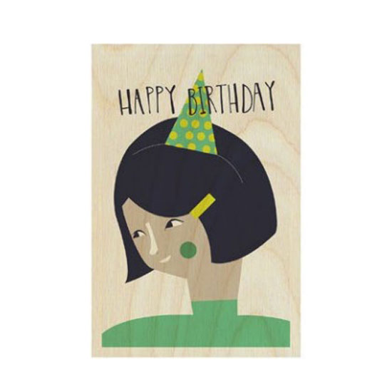 This is a birthday card with a dainty and unique design. It features a beautiful lady print with black English words “Happy Birthday”. This card comes in beige with wood patterns.