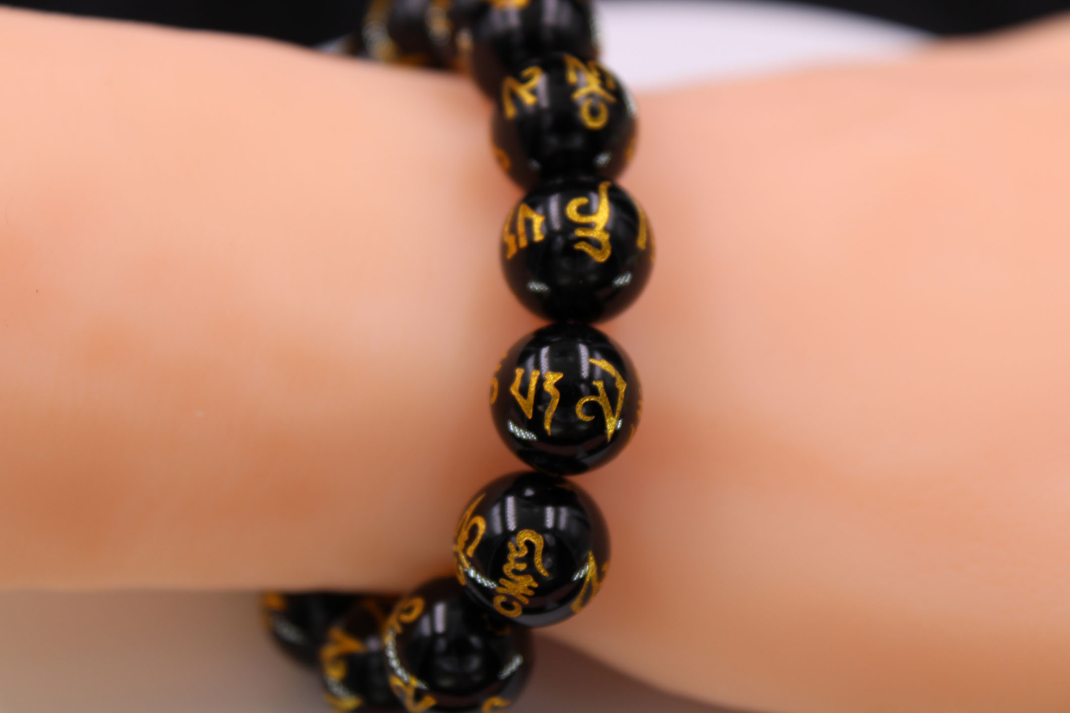 - A black agate beaded bracelet.