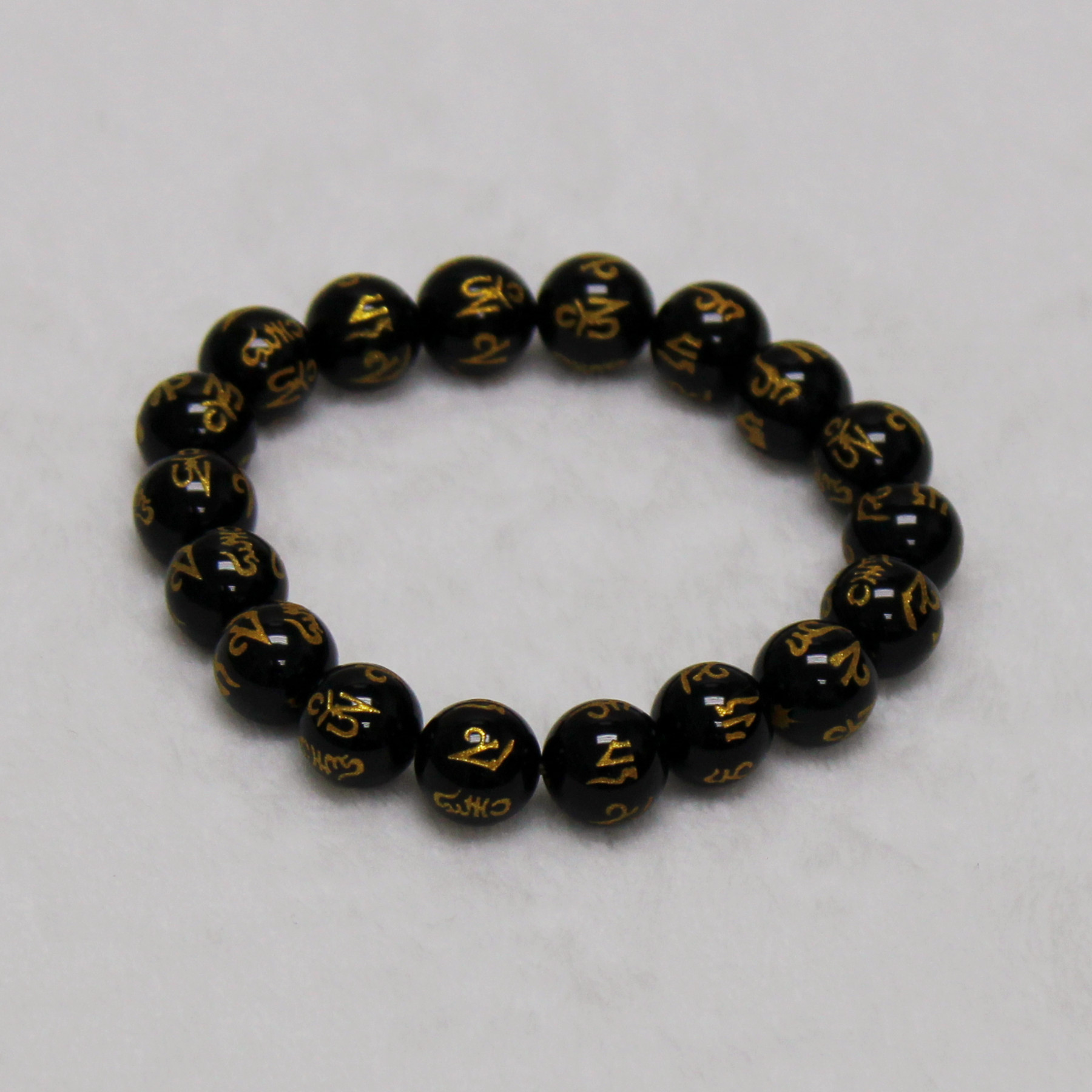 - Each bead is stamped with the six-syllabled Sanskrit mantra "Om mani padme hum".