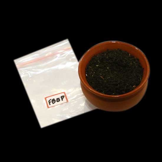 This FBOP (Flowery Broken Orange Pekoe) black tea leaf is usually larger than the standard BOP and often contains brown and silver tips. The tips are not pieces of flower, but merely tender new leaf buds. This black tea leaf is from India.