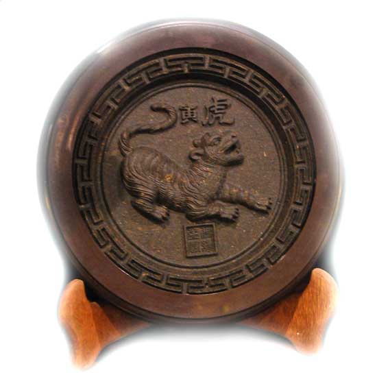 This black tea brick is especially pressed into a cake-like shape with a tiger pattern. The robust structure is durable and easy to maintain. This brick is an excellent decorative choice for enthusiastic tea lovers.
