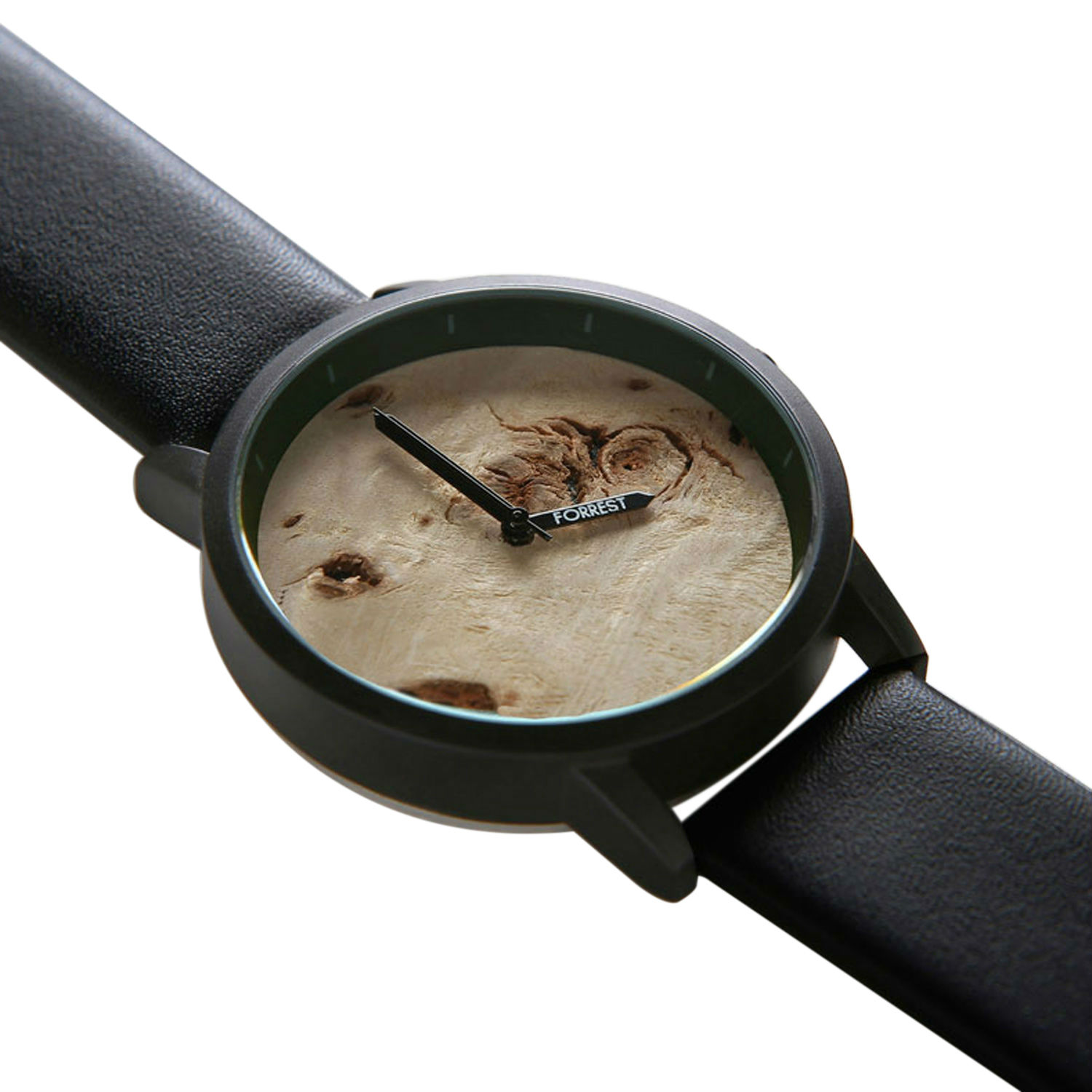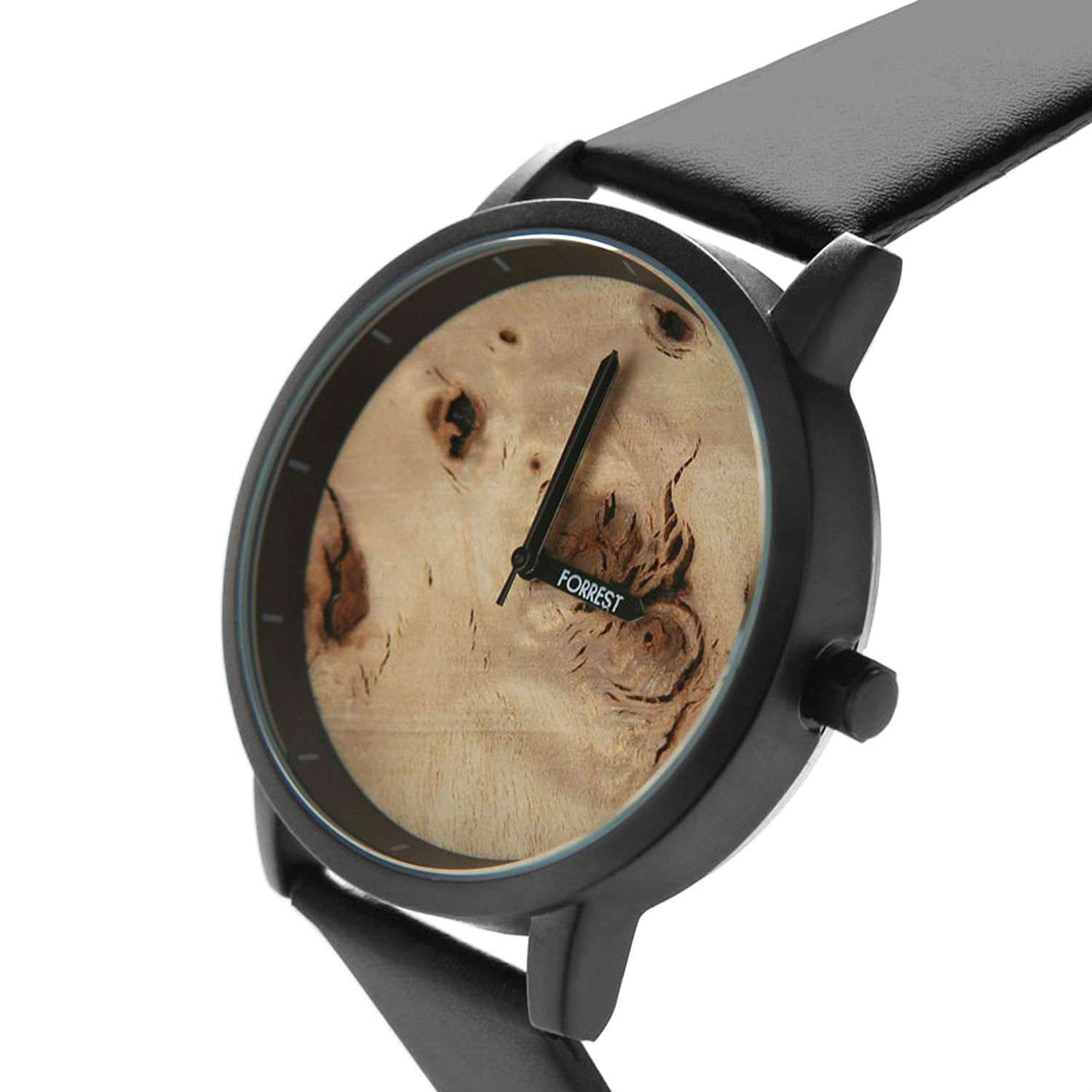 Displayed here is a stylish timepiece crafted with a meticulous attention to detail. It features an hour hand, a minute hand and a second hand rotating around the mapa wood dial. This wood dial watch is an affordable elegant timepiece, promising to attract lots of welcome attention.