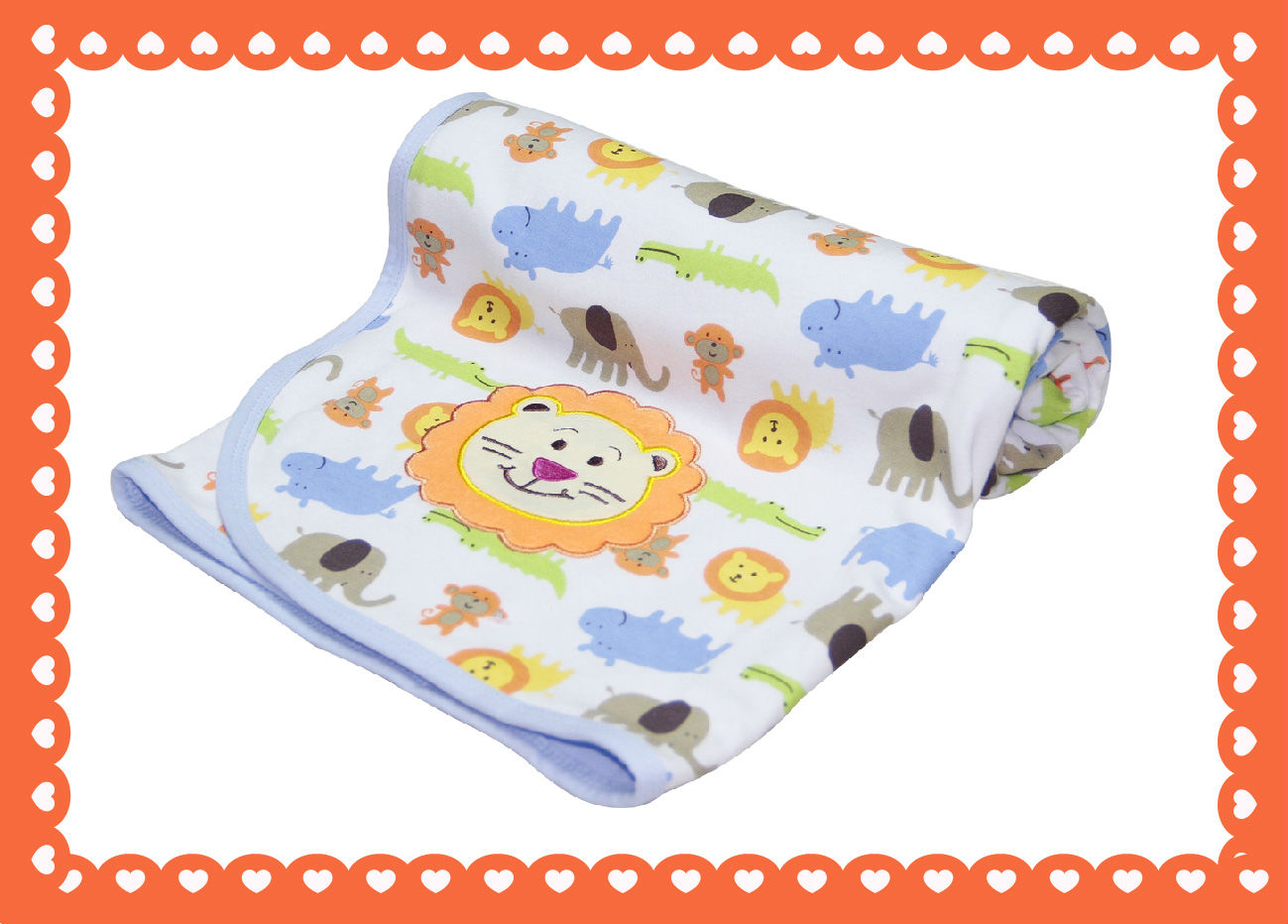 blanket swadding by printing embroidery single layer or double layers.100% cotton interlock cotton terry or cotton bamboo fabric