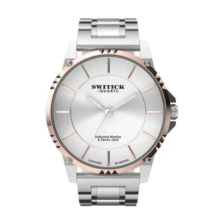 • Stainless Steel / Genuine leather band with stripe perforations for an adjustable fit