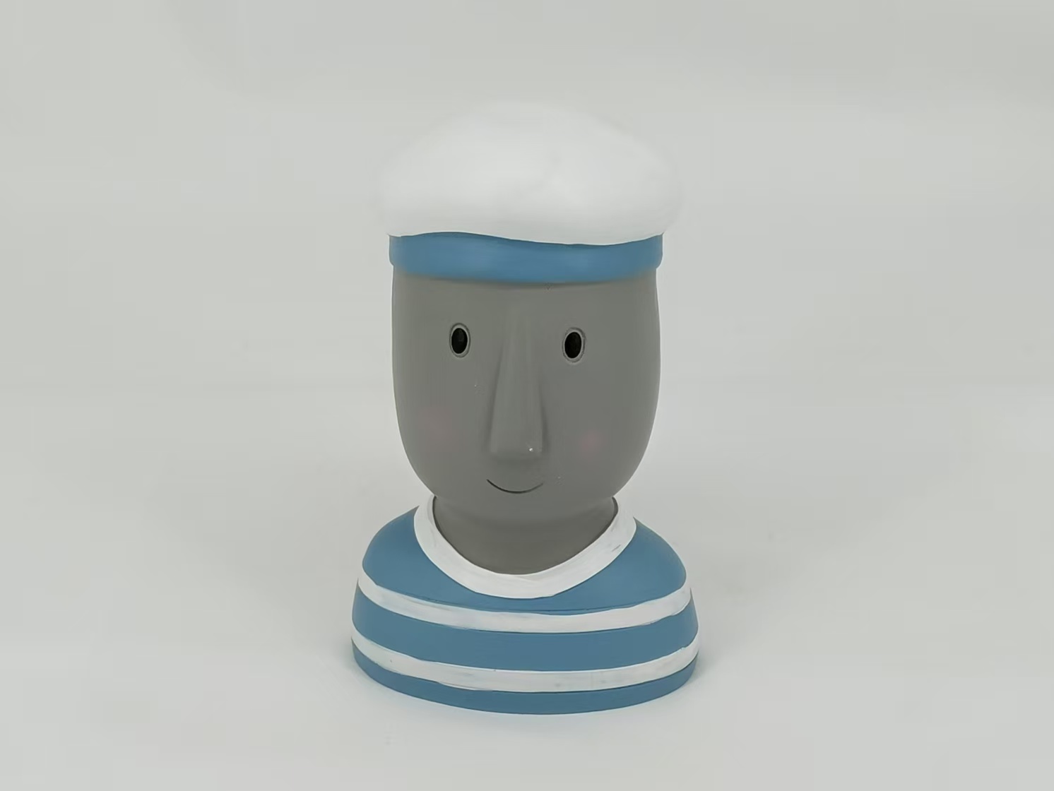 Crafted from weather-resistant cement, this nautical-inspired figurine features a striking navy hue with intricate anchor detailing and a distressed finish, adding rugged charm to coastal or industrial decor. Meticulously hand-painted, it stands 10" tall, making it a bold statement piece for shelves, mantels, or nautical-themed spaces. Durable and timeless, it blends maritime nostalgia with modern design.