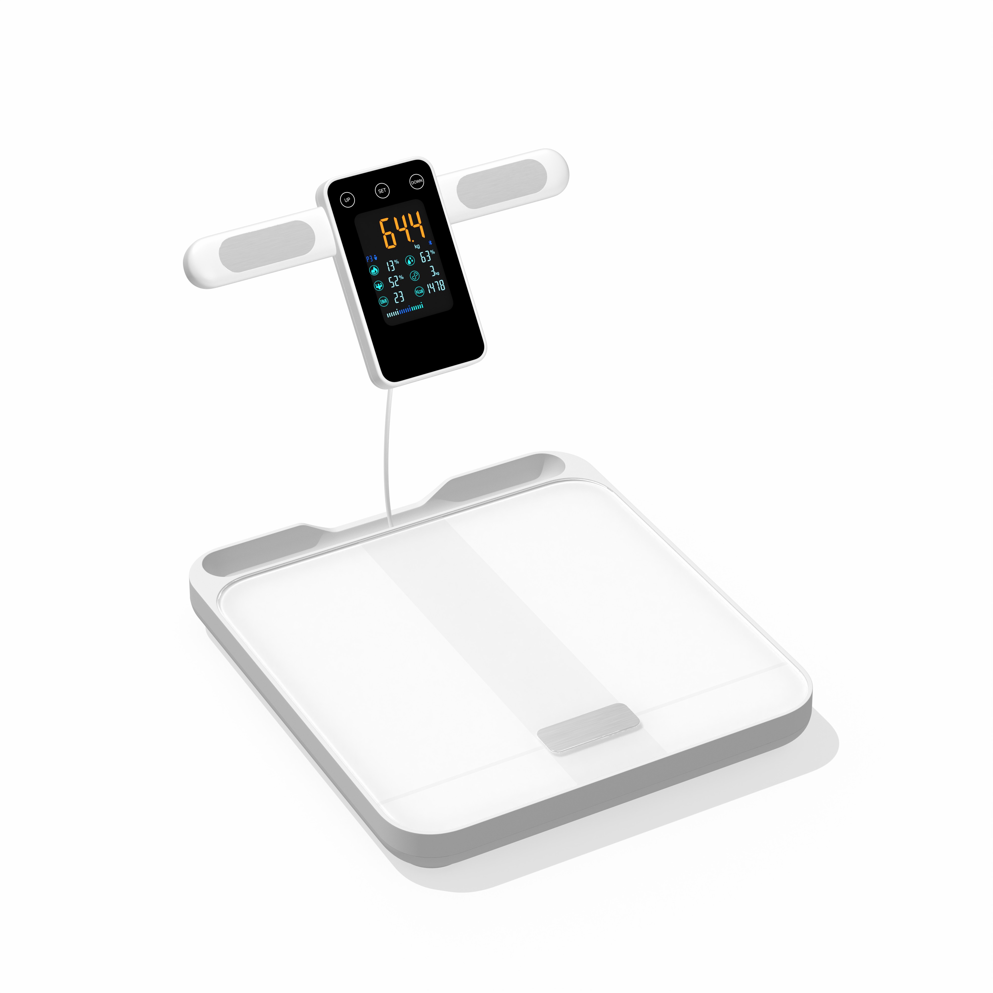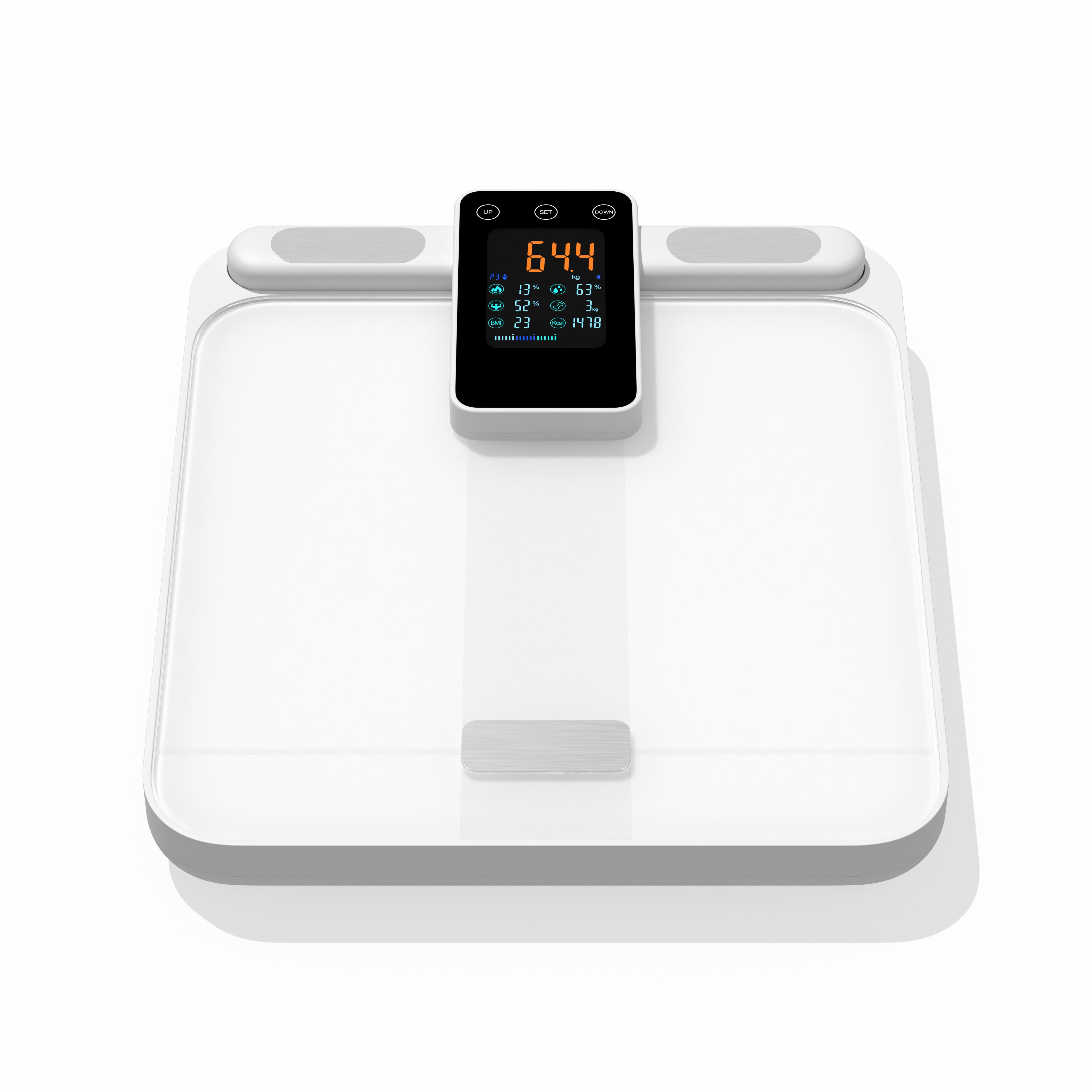 7)Measure:weight,fat%,water%,muscle%,bone%,BMI &Calorie and athletes mode