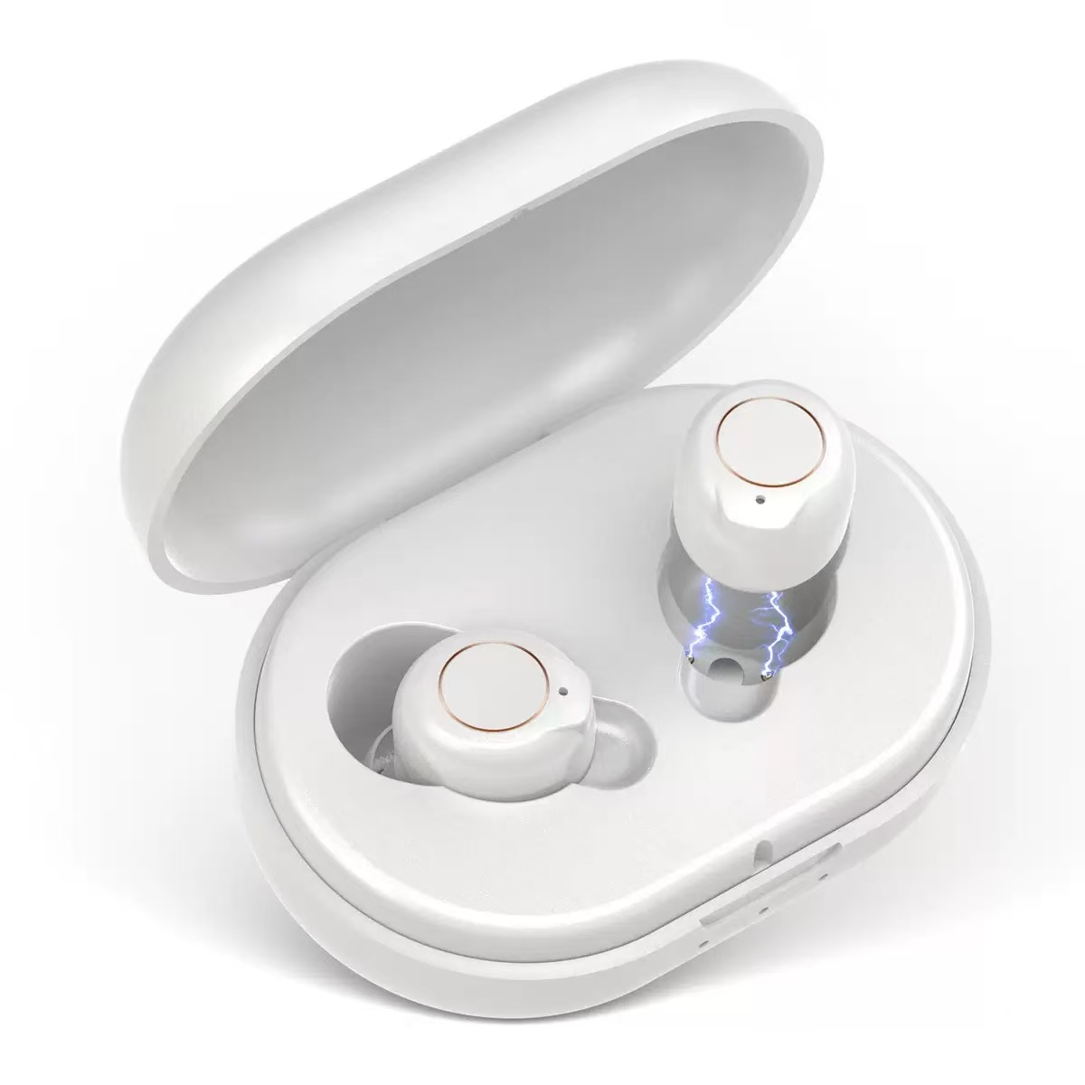 Comes with a convenient charging case. Simply place the device back in the case to power up—no more fumbling with tiny batteries.