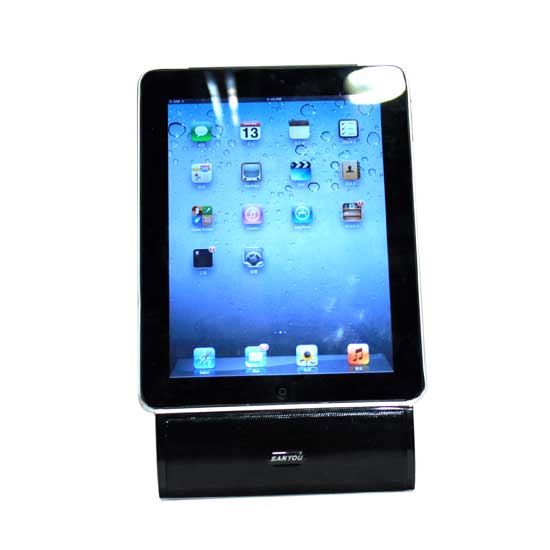 This rectangular Bluetooth speaker is professionally crafted to ensure excellent sound quality. It can serve as an iPad bracket for extra functionality. This versatile Bluetooth speaker allows hands-free operation.