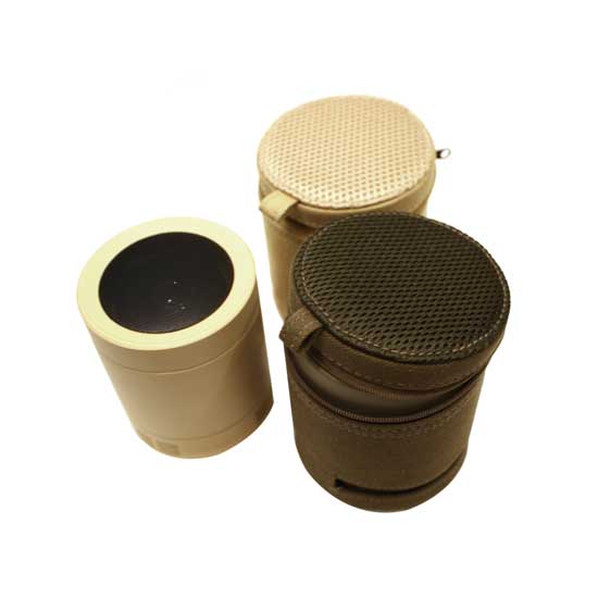This loud speaker comes with a cylindrical body in a light coffee color. It is compatible with Bluetooth-enabled devices for easy music playing. A matching case is available to protect the speaker from scratches.