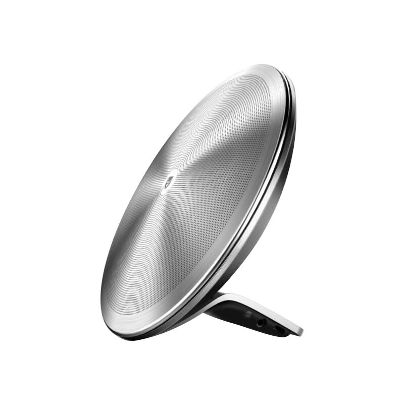 Ultra-sleek and stylish, this disc-shaped speaker brings a modern touch with all-over metallic finishing. Thanks to the Bluetooth application, you can pair it up with the Bluetooth-enabled phone and play your favorite music with crisp, clean sound and deep bass wirelessly. It is also integrated with a mic for hands-free call receiving.