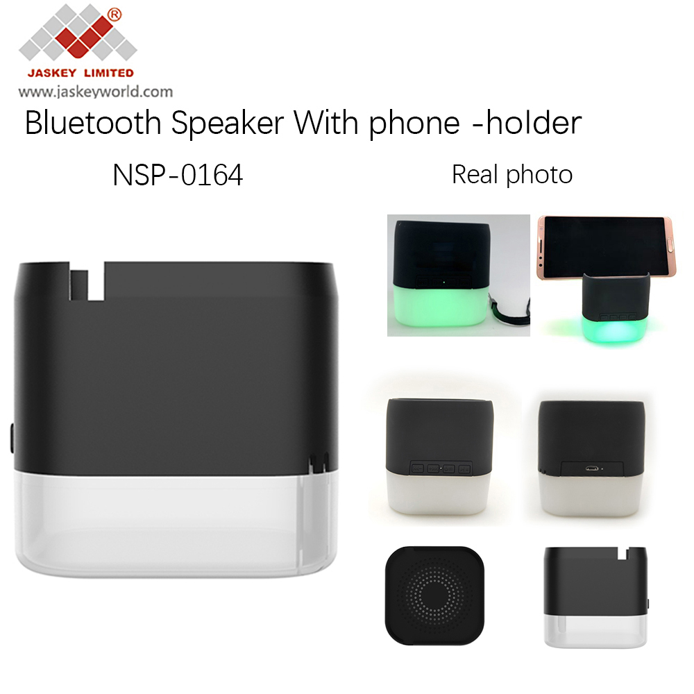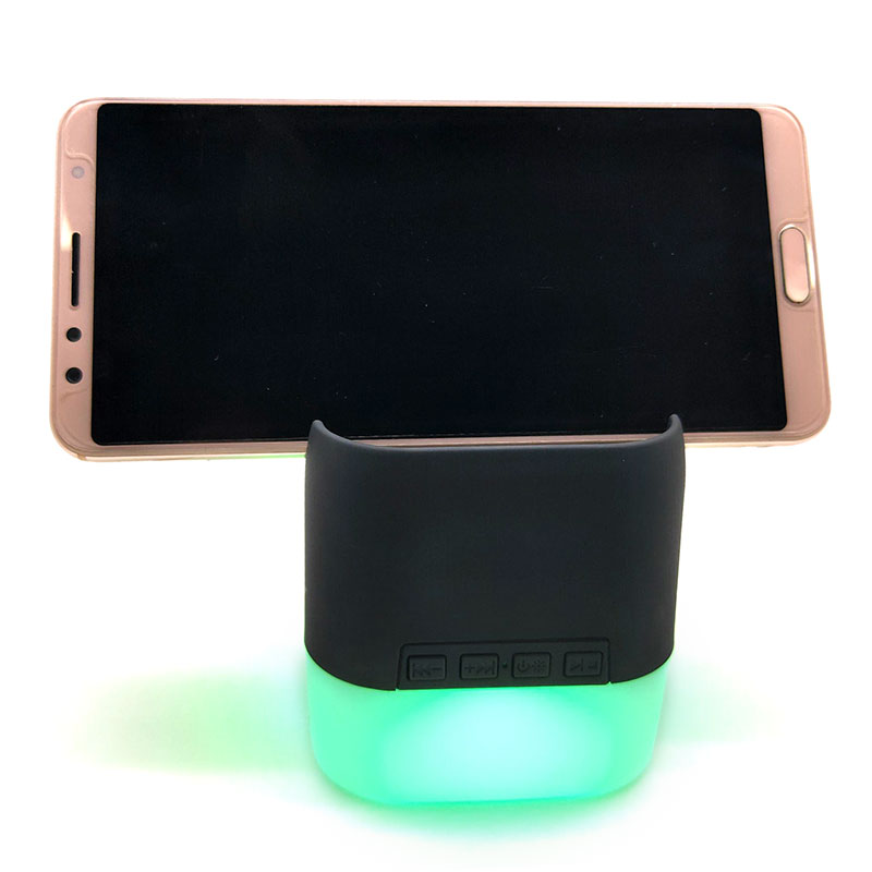 Bluetooth speaker with integrated light at the bottom and smart phone-holder Case