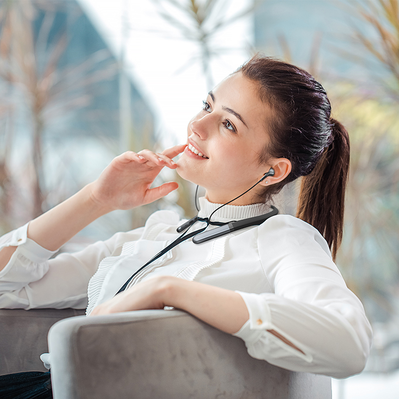 2..Ergonomic neckband design, you can wear the headphone on your neck comfortably