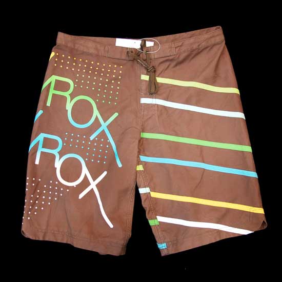 The presented board shorts are well made of pure polyester for comfortable wearing experience. The drawstring waistline allows easy adjustment. The board shorts are accented with colorful stripes and customized logos for added style.