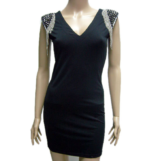 Featured is a ladies’ V-neck bodycon dress with shining beads detailing on shoulders. The dress is meticulously designed to help you show your excellent body shape. The stylish design is very attractive for women to wear in parties.