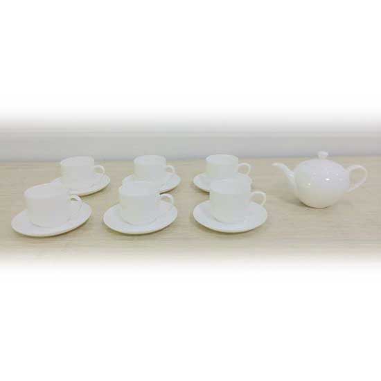 This 13-piece tea set comes with a tea pot, six cups and six dishes. It is made of top-grade bone china for a long service life. This stylish tea set is ideal for tea lovers.