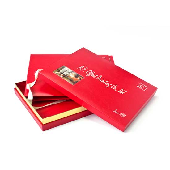 This bookcase box features a bold red appearance for snatching your attention. It adopts 140gsm fancy paper, 2mm duplex board and gloss gold cards for a luxurious accent. There are assorted designs available for your selection.
