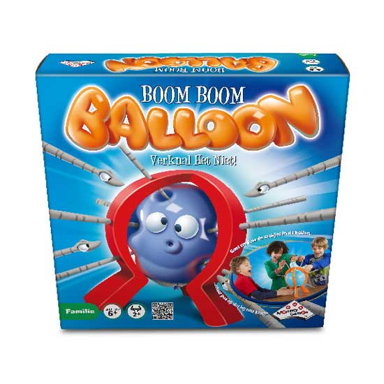 This Boom Boom balloon is an action game for children. Place the balloon, drop the die and push in the sticks. If the balloon pops, you lose the game.