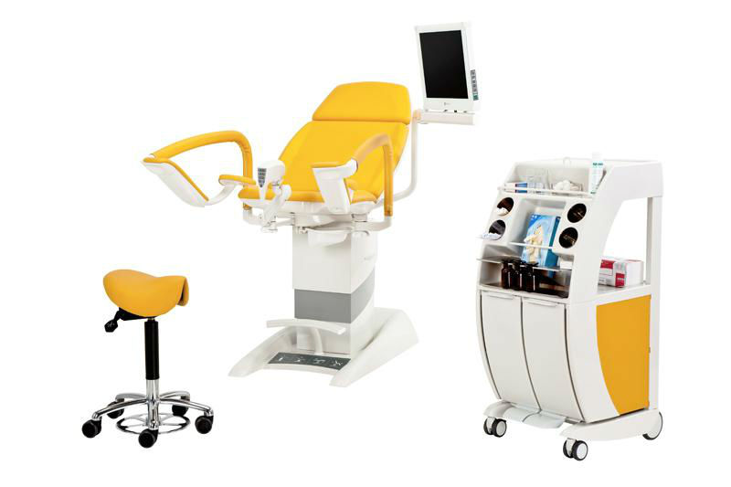 Borcad examination chair integrated digital video colposcope, LCD monitor and instrument tray