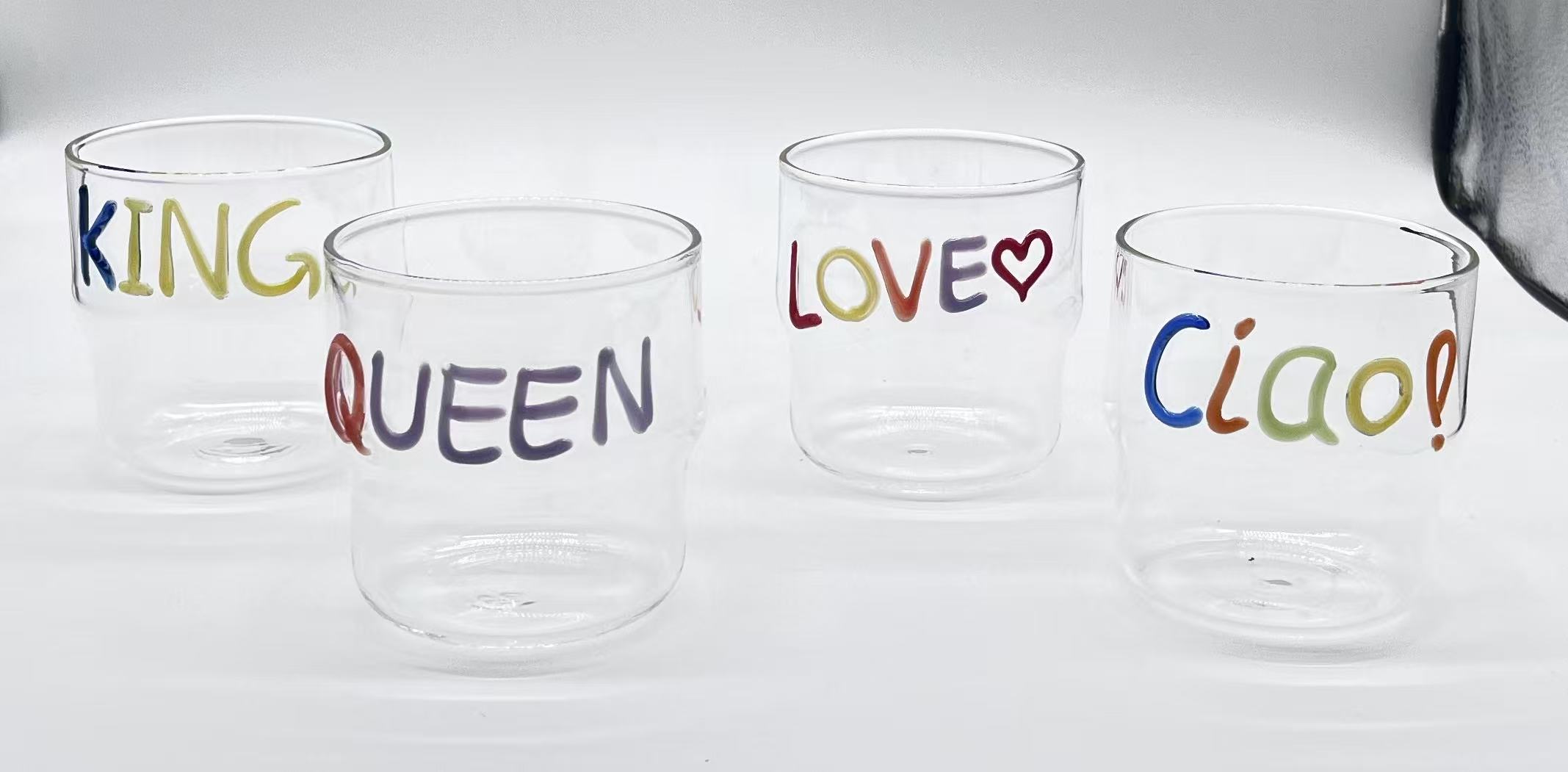 Borosilicate stackable cup withwording