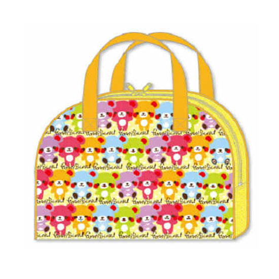 This Boston beach bag features a cute, colorful pattern of cartoon bears. It is designed with a double zipper closure for extra convenience. It has a large capacity and is an ideal choice for a trip to the sea.
