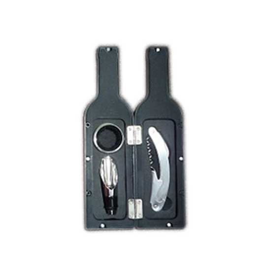 This wine set comes with a wine pourer, a corkscrew and a bottle-shaped case. Each item is meticulously crafted with rugged construction and first-rate durability. This handsome wine set makes an ideal gift for wine lovers.