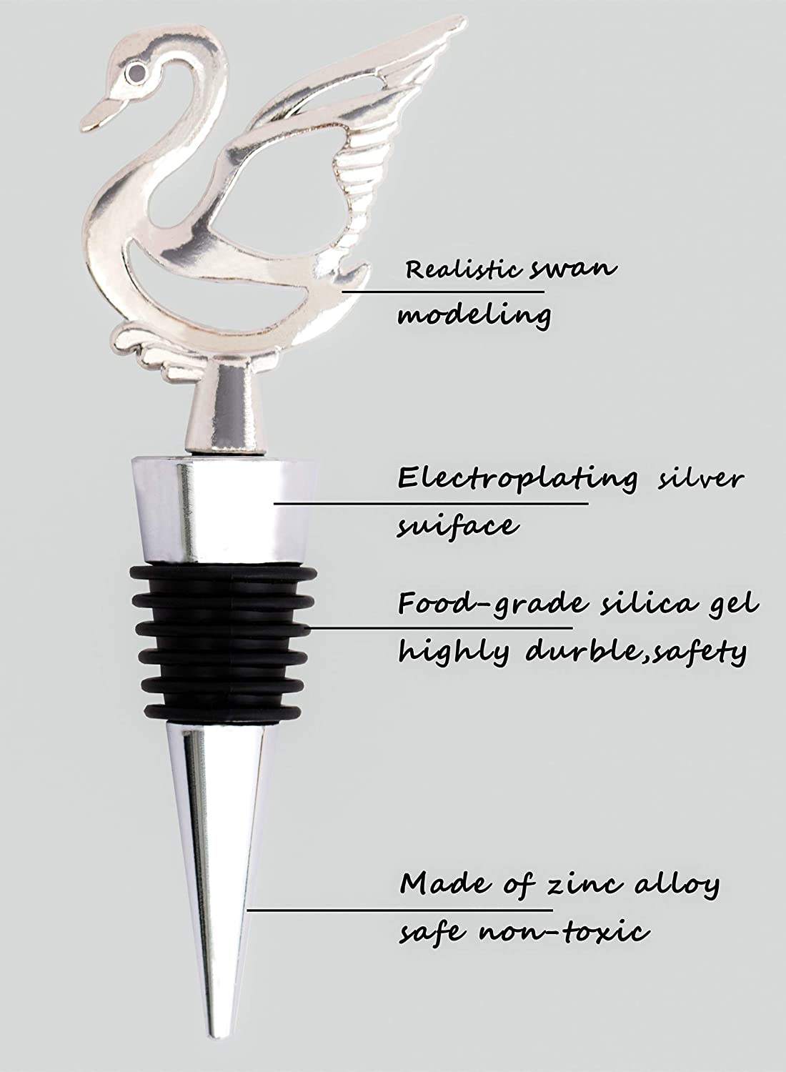 Bottle Wine Stopper Top Closer Seal with swan in silver Color - Reusable Wine Saver Sealer Plug